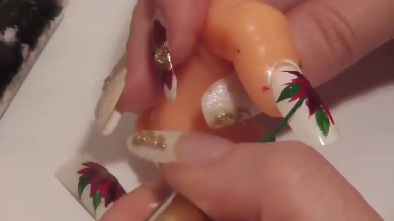 Elegant Christmas Nails Art Acrylic 3d Poinsettia Tutorial