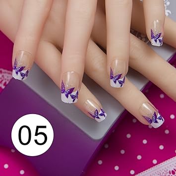 Amazon Com 24pcs Full Cover Fake Nail Art Design Self Adhesive