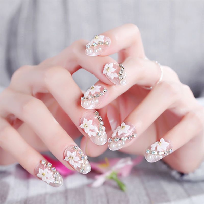 Details About 3d Bling Crystal Stiletto Fake Nail Art Diy Shiny Press On Nails Frosted White