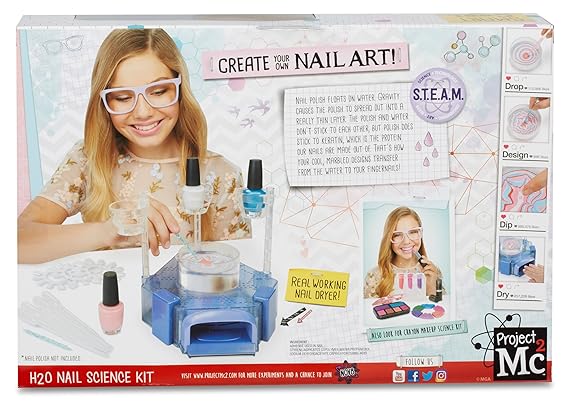 Project mc2 is where smart is the new cool. 38 out of 5. This create your own nail art kit allows you to produce unique designs for your nails by mastering a scientific process known as hydrographic printing. Create one of a kind nail designs that will impress all your friends with this project mc2 h2o nail science kit.