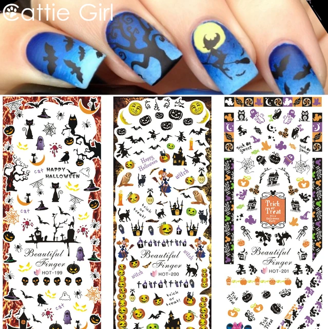 Halloween Nail Decals Trick Or Treat Ghost Pumpkin Etsy