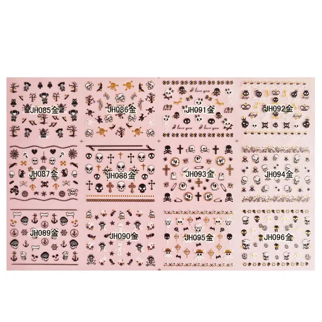 1 Set 12 Designs Halloween Nail Art Sticker Silver 3d Skull Pumpkin