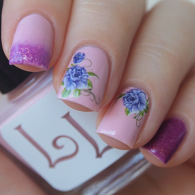 Purple Flowers Nail Decals Nail Art Stickers Nail Water Etsy