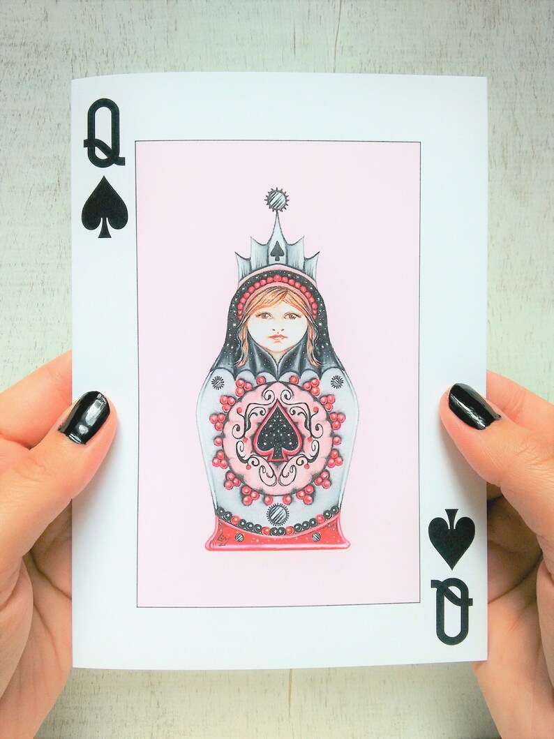 Nesting Doll Greeting Card Greeting Card Queen Of Spades Etsy