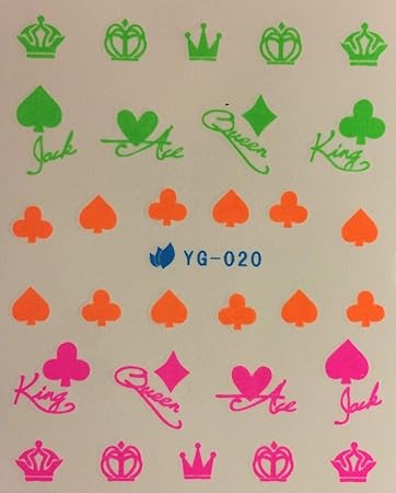 Amazon Com Nail Art Water Decals Neon Card Suites King Queen Ace