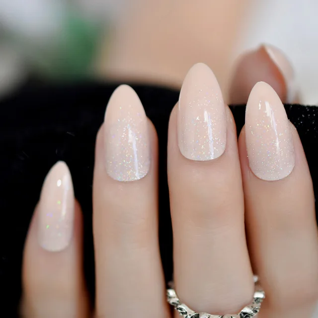 Glitter Nude Color Unique Nail Art Tips Rainbow Holo Powder Nail Art