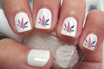 Amazon Com Marijuana Pot Leaf Rainbow Color Nail Art Decals Beauty