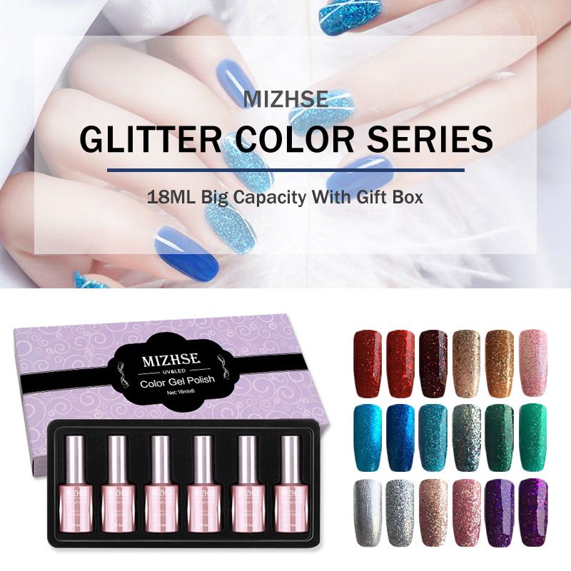 Mizhse Rainbow Color Gel Nail Polish Glitter Neon Gel Lacquer For