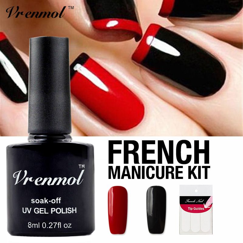 Vrenmol Nail Art Set Black Red Color Nail Gel Polish Soak Off Uv Gel