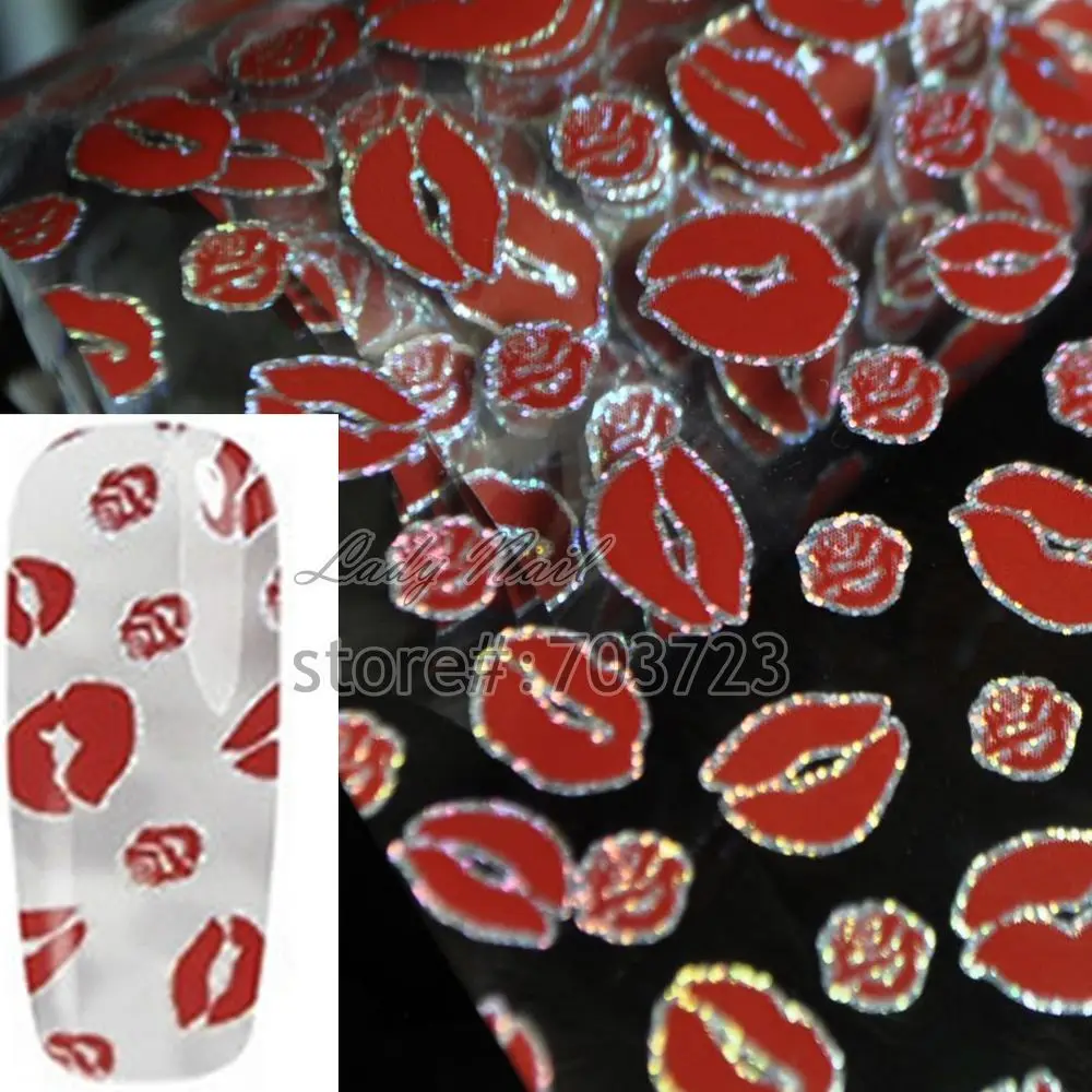 Fashion Laser Sexy Red Lips Nail Art Transfer Foil Sticker For Nail