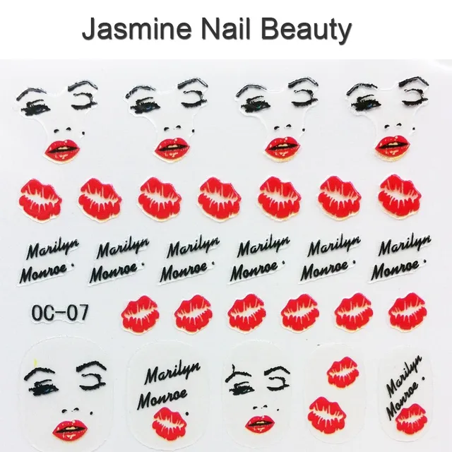 Foreverjsamine 5pcs Marilyn Monroe Nail Art Sticker Red Lips Nail
