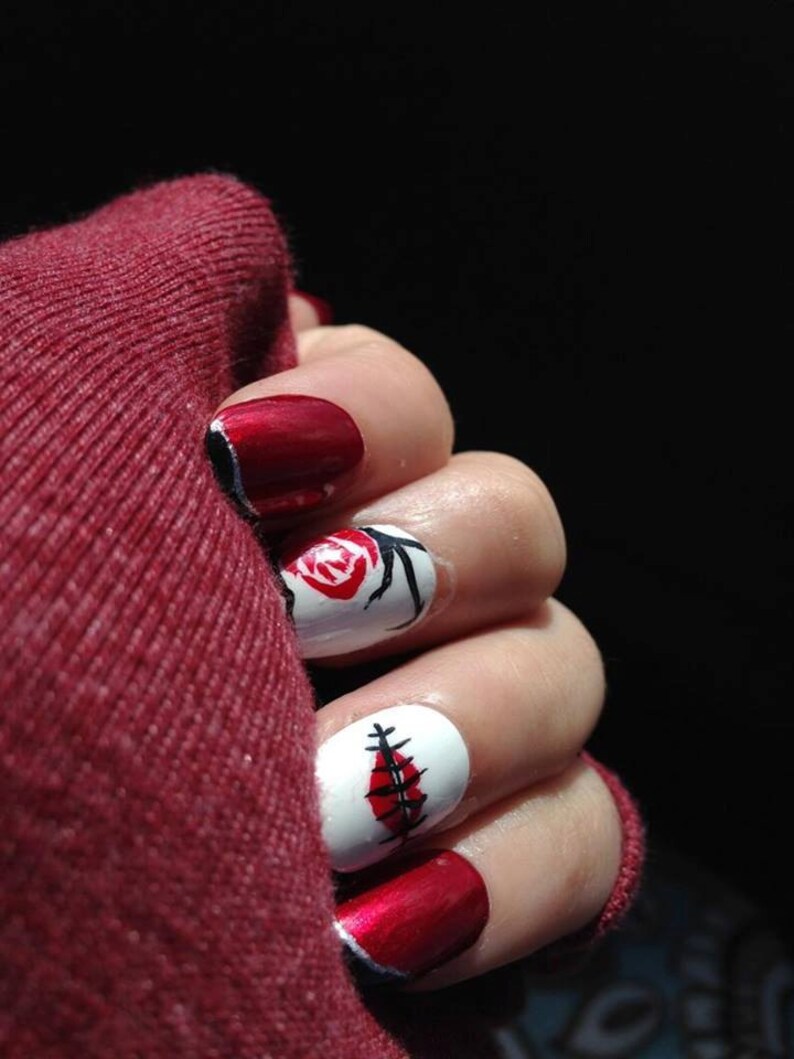 Red Rose And Lips Nail Art Etsy