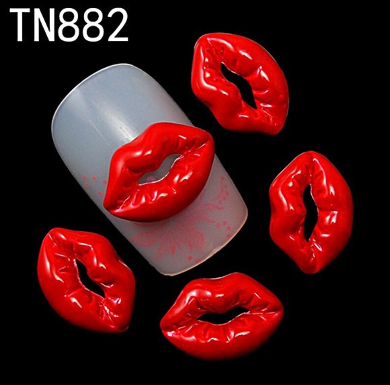 Fashion Red Lips Alloy Glitter 3d Nail Art Decorations With Etsy