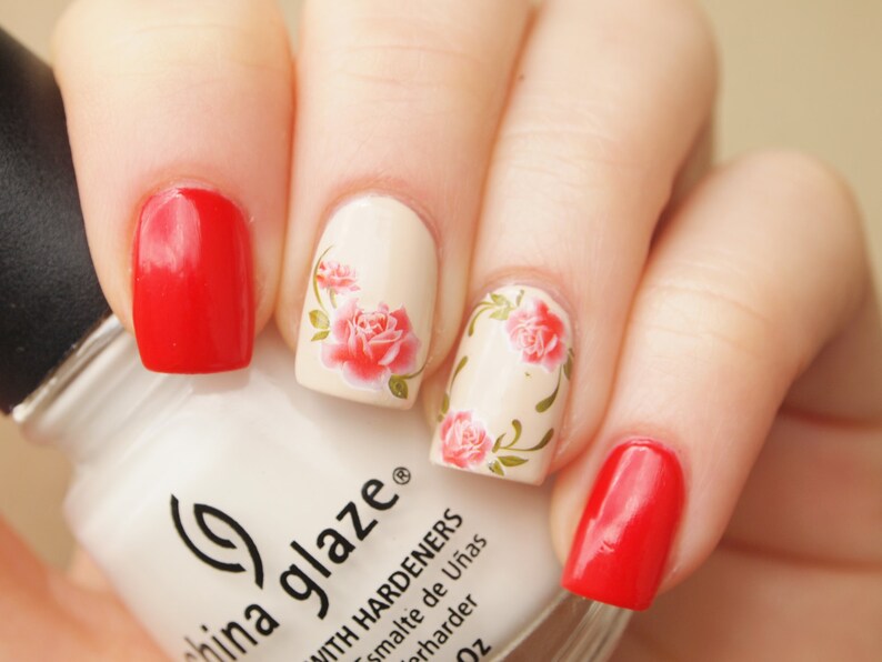 1 Sheet Of Red Rose Nail Art Water Decals 20pcs Floral Nail Etsy