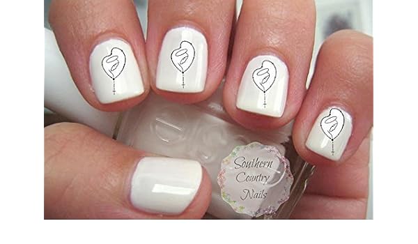 Nail Art Design Catholic Rosary Jesus Hand Drawn Acrylic Religious