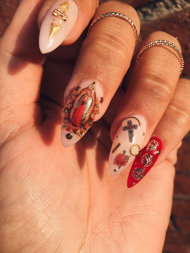The elaborate nail art makes use of religious icons and symbols as well as the intricate detailing done with bright jewel tones metallics stick on gems and of course glitter. No matter what youre looking for or where you are in the world our global marketplace of sellers can help you find unique and affordable options. Check out our unique assortment of nail wraps right now. Ive picked my fave holographic top coats now what are yours.