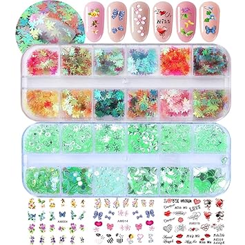 Amazon Com Iridescent Holographic Nail Sequins Star Leaf Loose