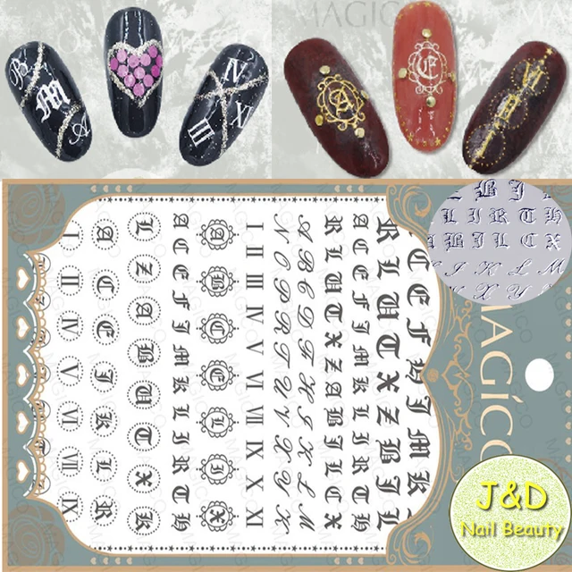 Black Ancient Capital Letter Roman Writing Water Transfer Nail Art