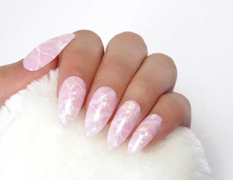Holographic Rose Quartz Nails Fake Nails Holo Nails Press Etsy