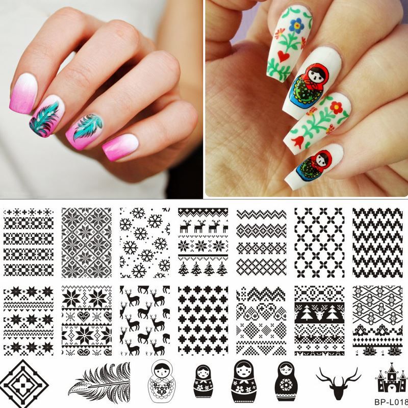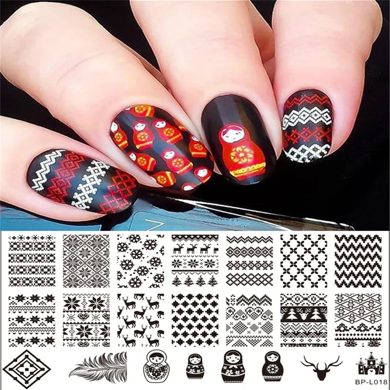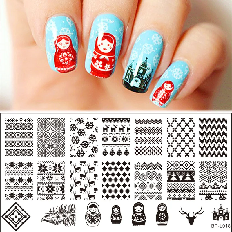 Nail art stamping plate russian doll pattern image template bp l018 born pretty.