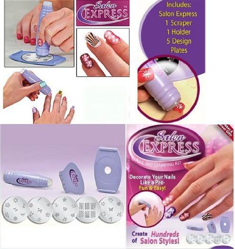 This is my review and test of drikk stamping plate drk a. As simple and easy as 1 2 3 great for manicures and pedicures use it with any nail polish you have your nails will always look sensational you will get professional salon results right at home salon express as seen on tv get beautiful salon quality designer nails in minutes. I found out that the salon express kit is available on amazon too. Salon express nail art stamping kit is kinda plain.