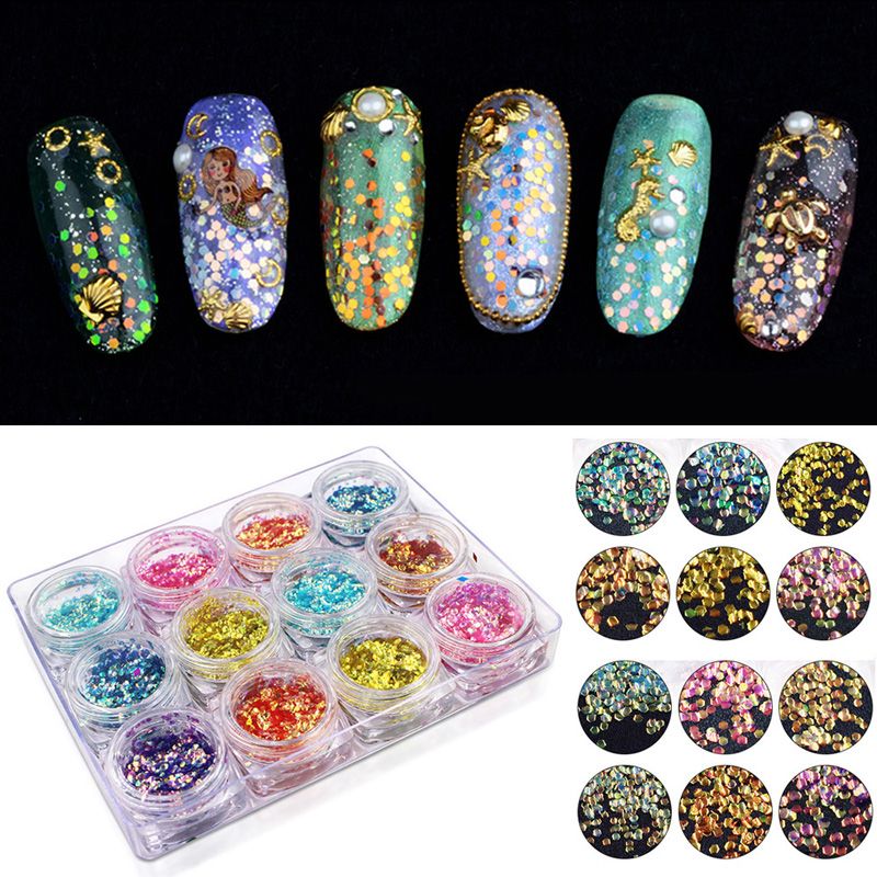 Details About Mermaid Sequins Fish Scale Nail Art Nails Iridescent Hexagon Paillette Glitter