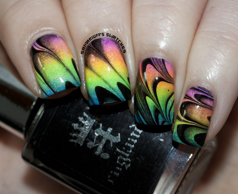See Through Neon Watermarble Nail Art By Sarah Eubanks Nailpolis