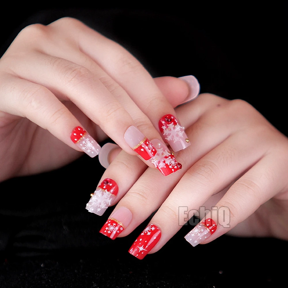 Snowflake French Nail Art Decoration Sexy Red Medium Full False