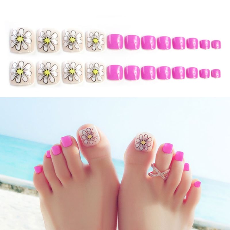Sexy toe nail art. Keep it simple with a design on just the big toe nail. Looking for ways to amp up your toes this summer. Coat your nails with a baby pink base color. Pink toenail art design with daisy flowers and cute butterflies.