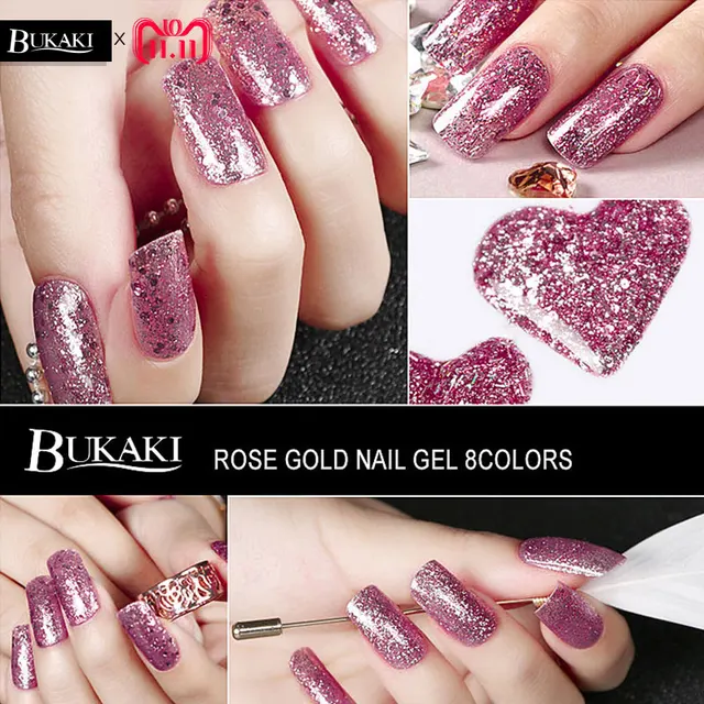 Bukaki 8 Colors Rose Gold Shiny Nail Polish Nail Art Glitter Uv Gel