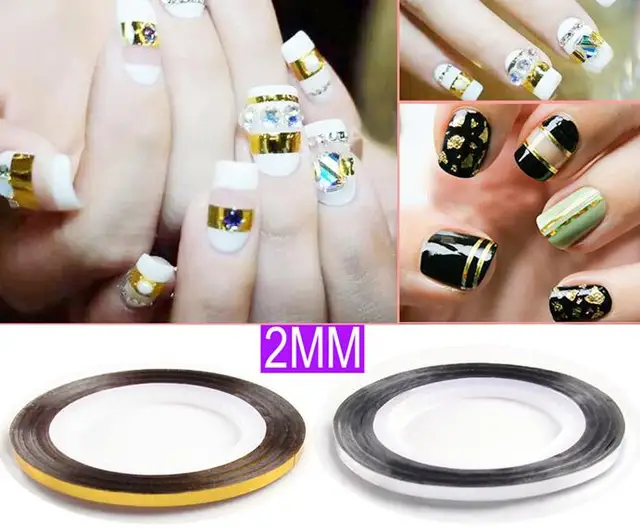 Nail Art Striping Tape White Black Silver Gold 2mm 100rolls Nail