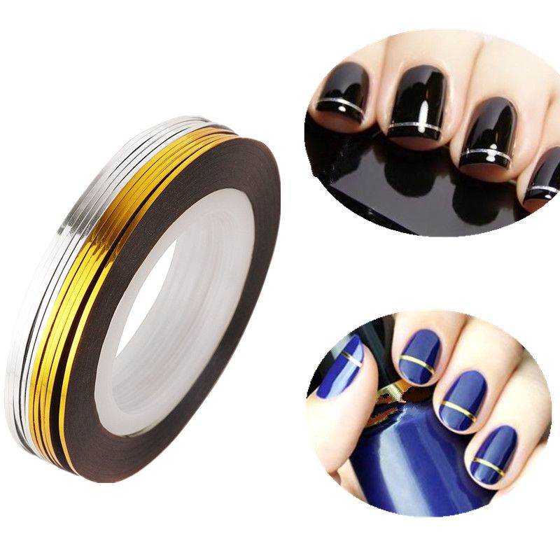 Amazon Com 1rolls Nail Art Glitter Gold Silver Stripping Tape Line
