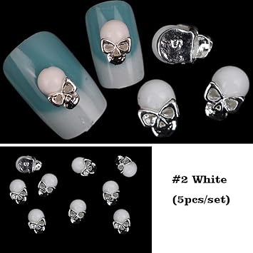 10pcs Manicure White Skull 3d Nail Art Decoration Alloy Nail Charms