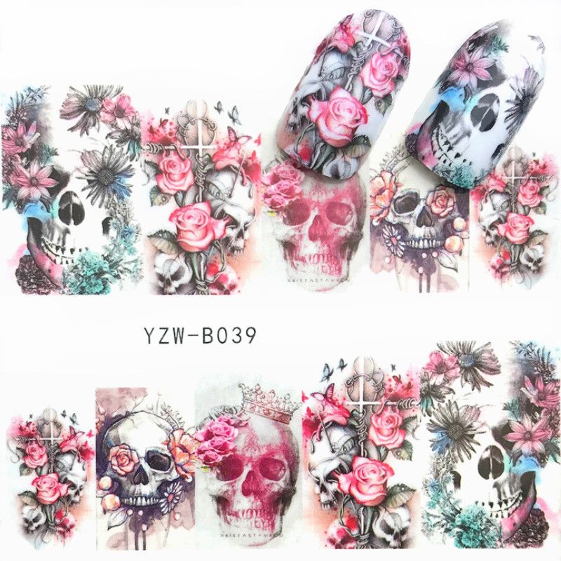 Skull Nail Art Flower Skulls Nail Water Decals Water Slides