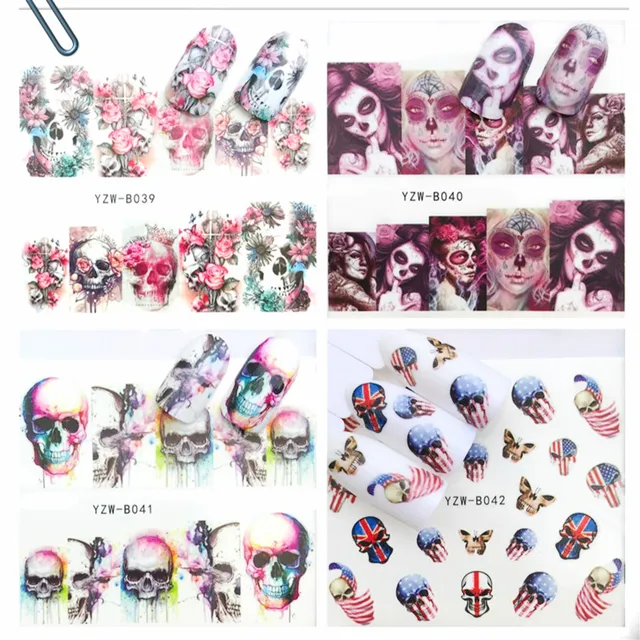 Nail Art Sticker Water Decals Transfer Stickers Halloween Skulls
