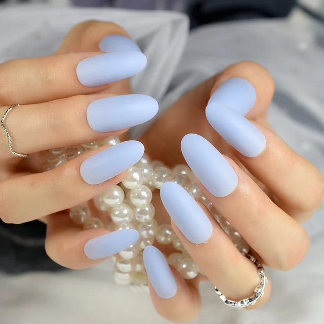 Matte Sky Blue Nail Art Tips Salon Quality Super Long Oval False