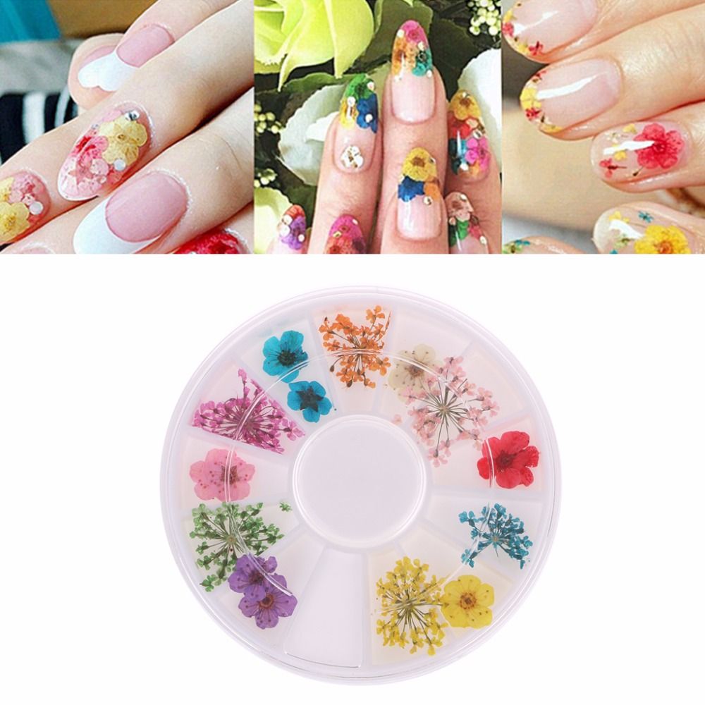 12 Colors Real Nail Dried Flowers Nail Art Decoration Diy Tips With