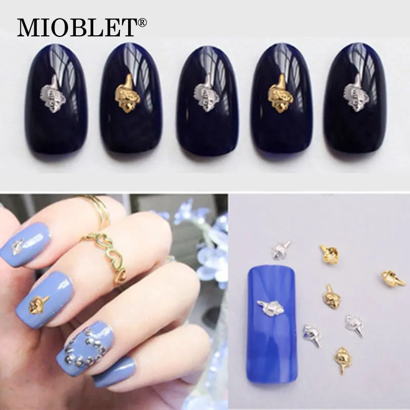 Mioblet 10pcs Pack Metal 3d Conch Nail Art Rhinestone Gold Silver