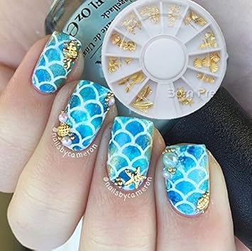 Amazon Com Gold Silver Sea Horse Nail Art Studs Sea Snail Coconut