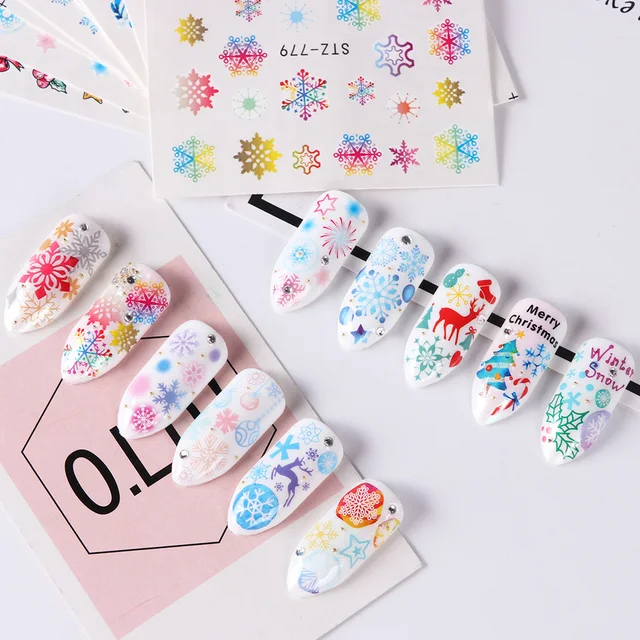 12 Sheetschristmas Snowflake Snowman Nail Art Decoration Stickers