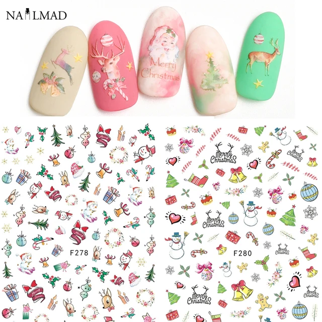 Cute 12 Style In 1 Nail Art Sticker Christmas 3d Nail Art Stickers