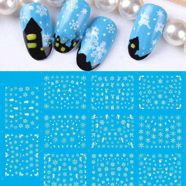 12 Sheet Christmas 3d Nail Art Stickers Snowflakes Snowmen Nail
