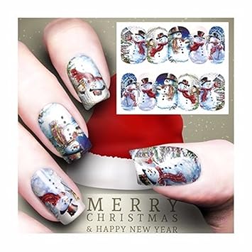 Amazon Com 1 Sheet Snowman Christmas Nail Art Sticker Water