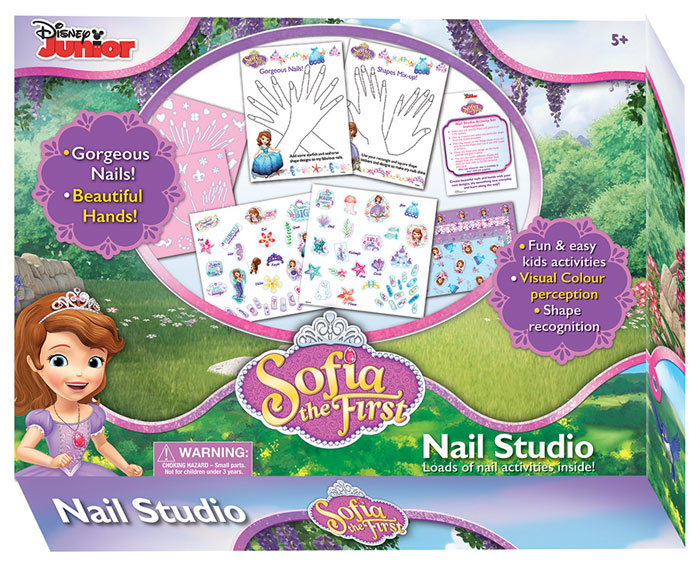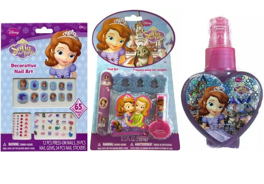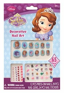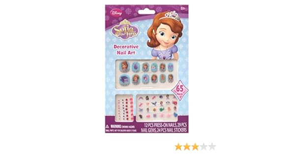 Sofia the first pretty purple and glitter carrying case for cosmetic kit with childs nail polish key chain scents lip gloss pouch mirror and hair clips by disney. Have fun accessorizing the princesss hands with lots of colorful rings and bracelets they are what sofia needs to match her playful style. Buy sofia the first 65 pcs decorative nail art nail stickers and gems x 4 packs. Clip file and restore her nails to their former healthy glow then start combining different nail polishes and elegant patterns to create a royal look.