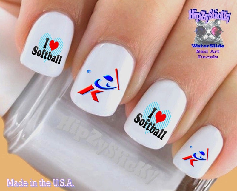 Sports Nail Decals I Love Softball Swing Batter Etsy