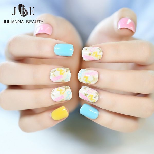 Fashion False False With Glue Candy Color French Nail Art Tips