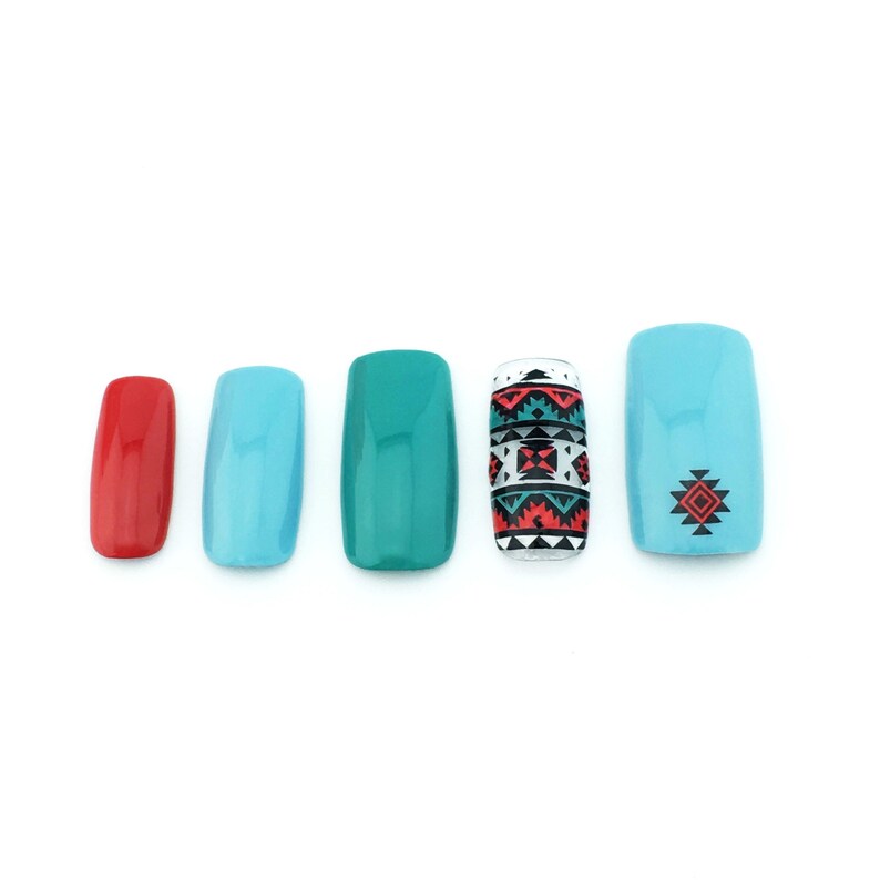 Southwest Nail Art Red Turquoise Nails Coral And Turquoise Etsy