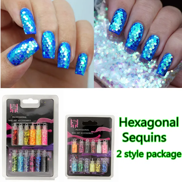 Nail Mermaid Glitter Flakes Sparkly 3d Hexagon Colorful Sequins Nail