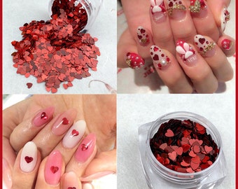 Valentines Nail Art Heart Shape Spangles Glitter Holographic Red