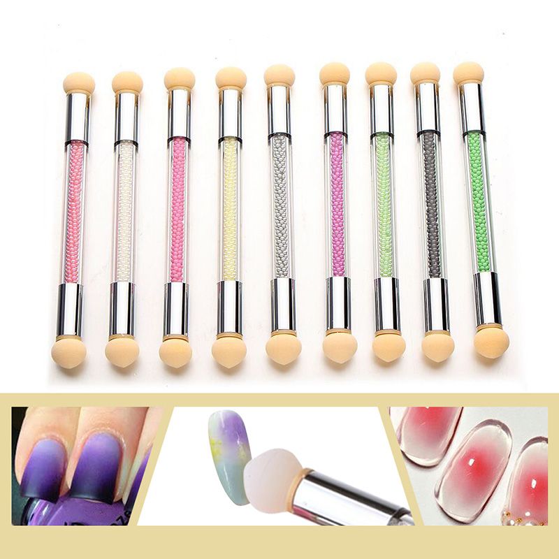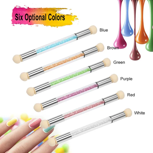 Double Head Nail Art Sponge Brush Acrylic Beads Handle Uv Gel Polish Gradient Painting Shading Brushes Manicure Accessory New